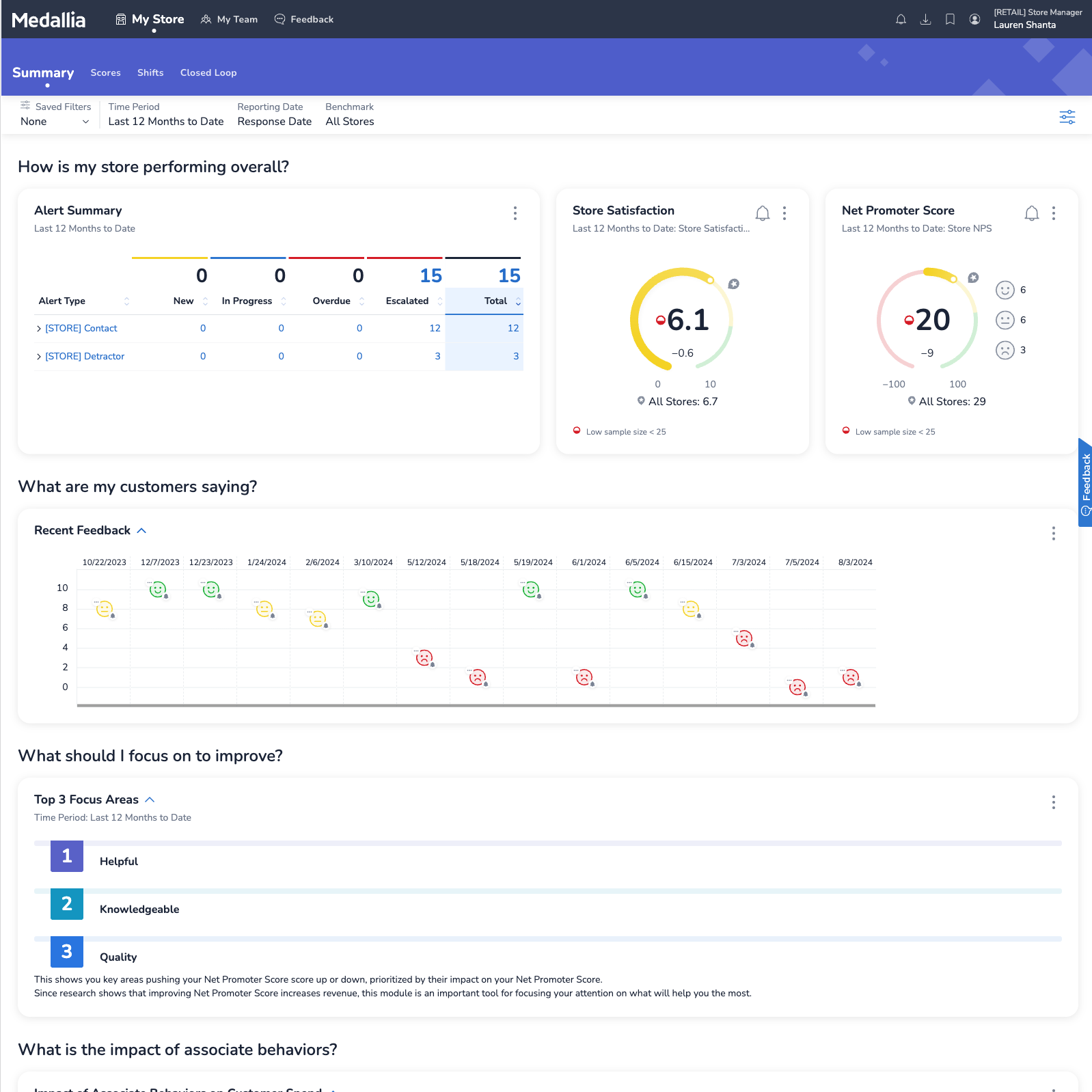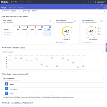 • Additional dashboard empowering frontline Store Associates with visibility into their own feedback and performance