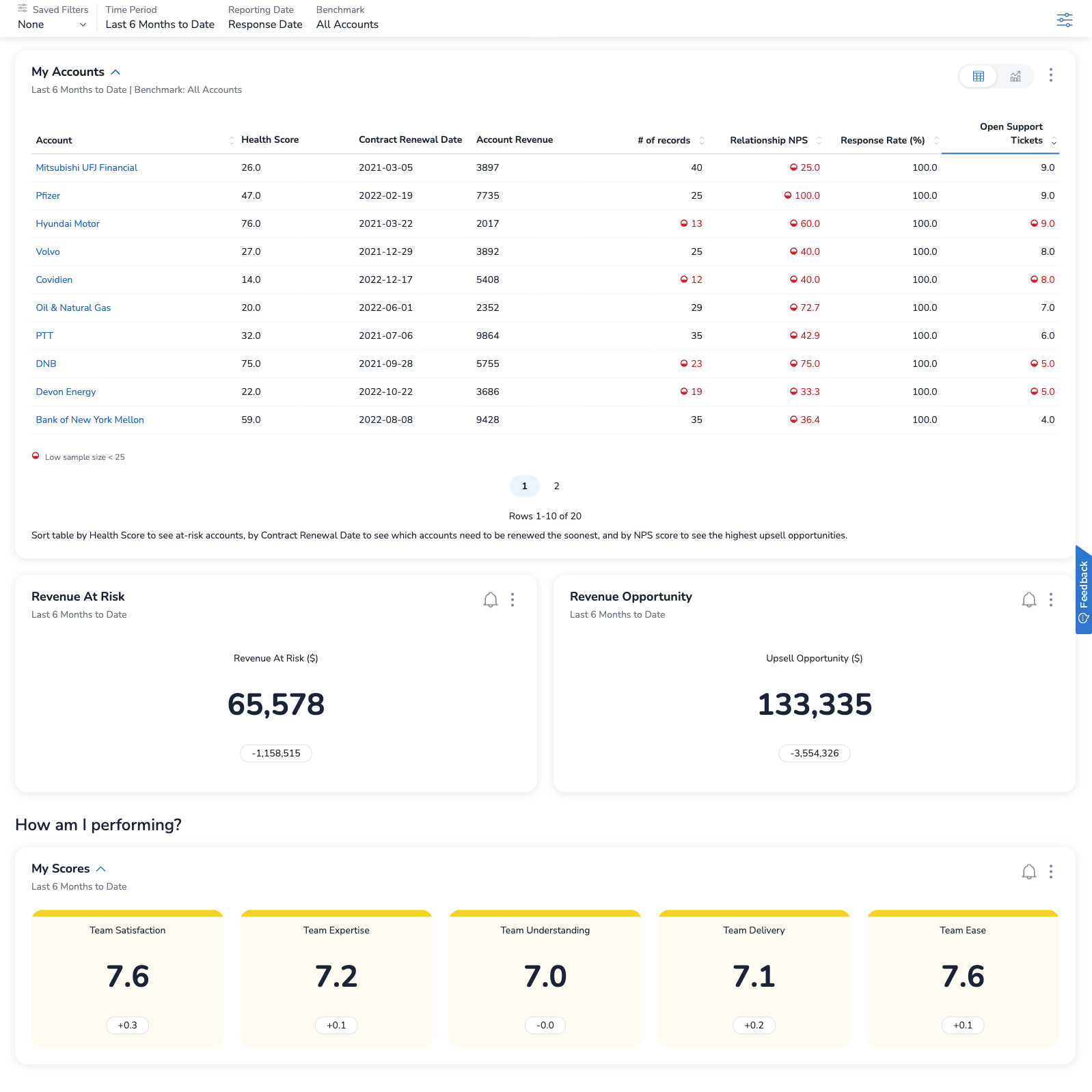 • Notifications to alert account leads of detractors, promoters or low driver satisfaction ratings and corresponding follow up workflows